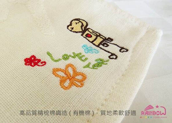 台灣製有機棉親膚小手帕:尺寸約23x23cm(刺繡圖案隨機出貨)